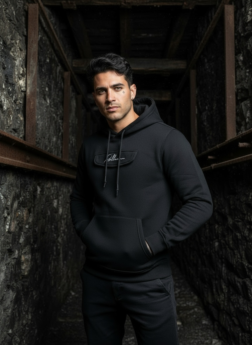 Hoodie Igor, zwart met geborduurd lichtblauw logo