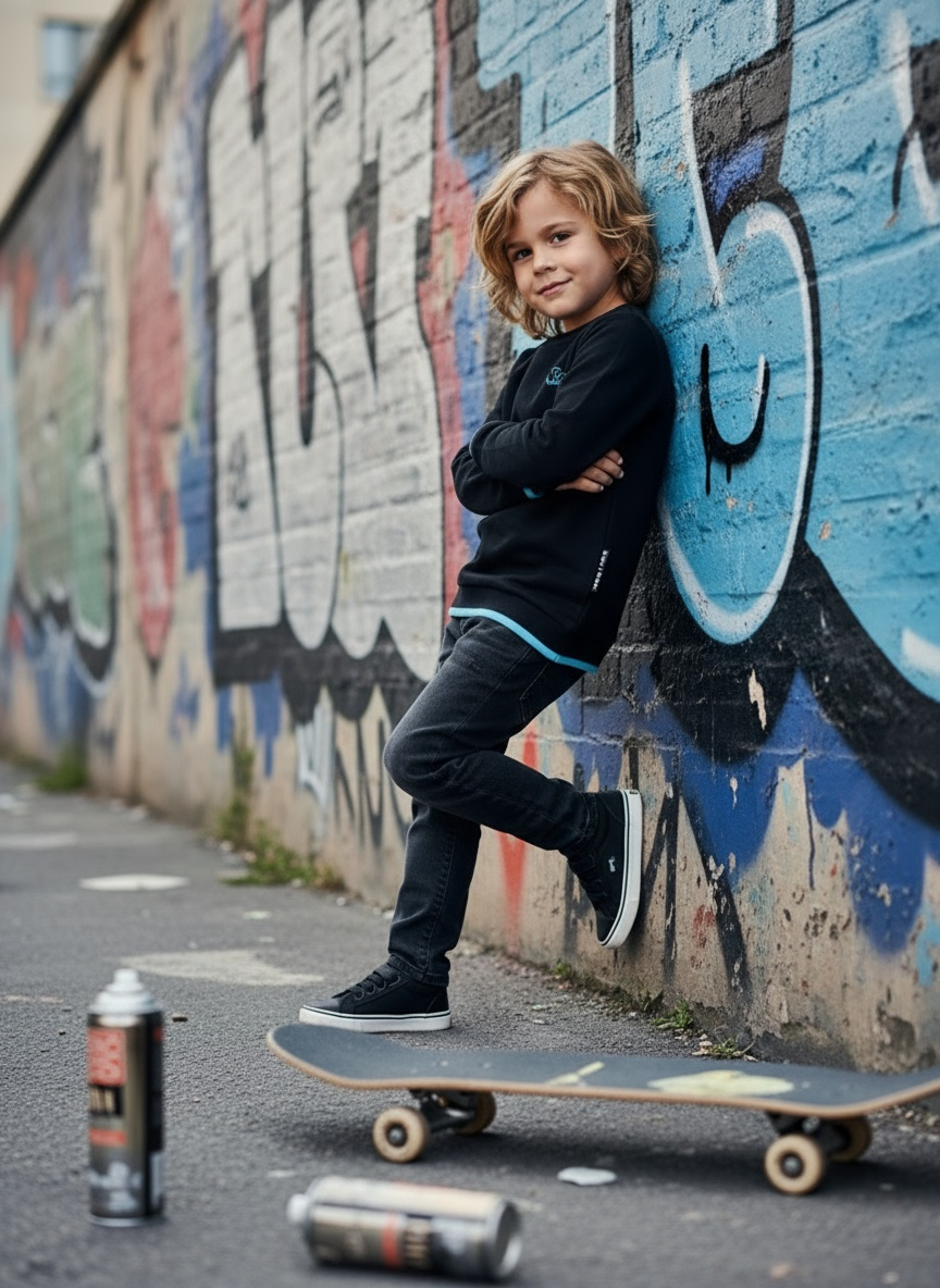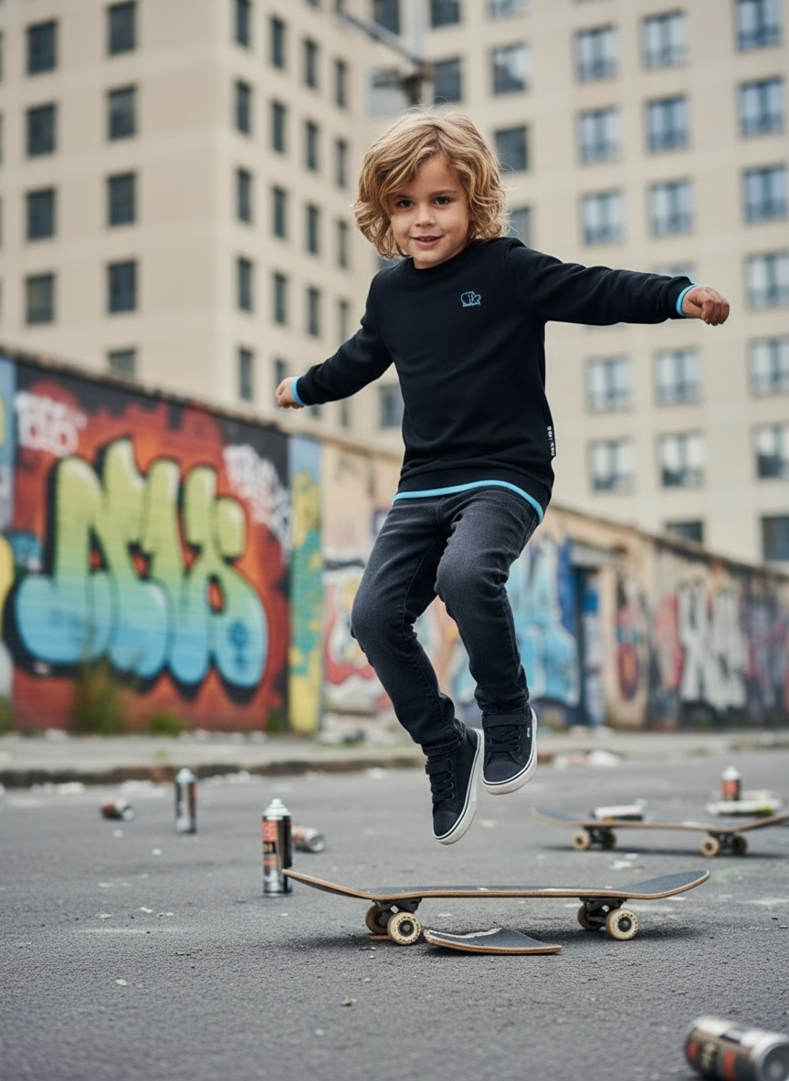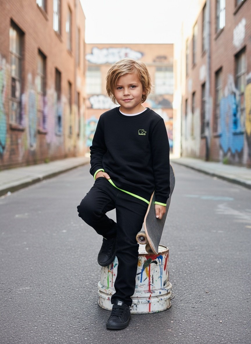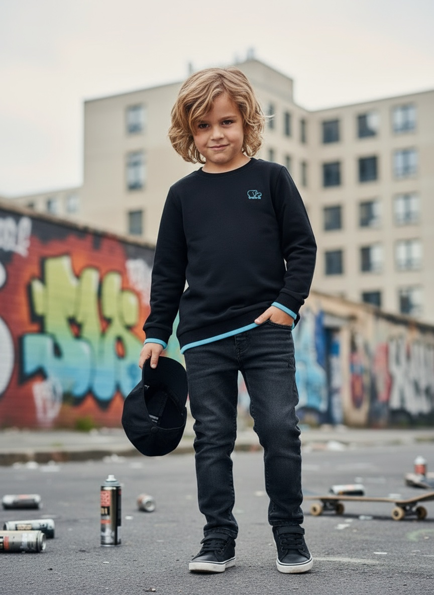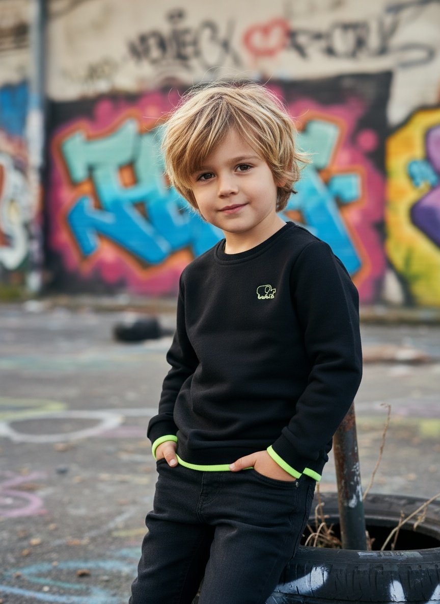 Sweater Tjabo - Kids, zwart met neon gele accenten