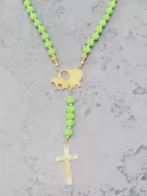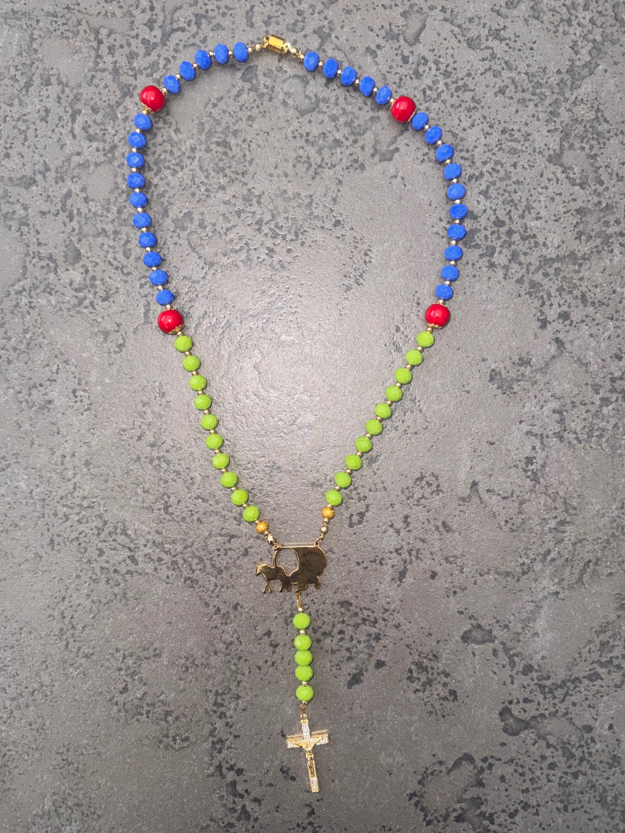 La Mama | Gypsywagon | Vergulde ROLLEMAN Logo Rozenkrans met Kruis en Magneetsluiting